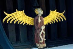 This carved alabaster monument of Bishop John Stanbury contains his effigy and has saints and angels as mourners carrying shields around all sides. Unfortunately the heads of the angels were chipped off during the reformation.