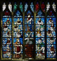 This stained glass window in the Lady Chapel of Evreux Cathedral was a given to the cathedral by King Louis XI of France between 1467 and 1469.