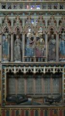 Tombe polychome de l'effigie du baron Pierre de Grandisson (d1358) et avec le couronnement de la Vierge au-dessus de l'effigie.