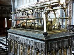 Ceci est le tombeau de Richard de Beauchamp, 13ème comte de Warwick mort à Rouen le 30 avril 1439. Son testament montre qu'il fit une dotation à la collégiale de St Mary, à Warwick, l'argent était donné pour la construction d'une chapellenie à St Mary Il donna égallement des dons à l'abbaye de Tewkesbury.