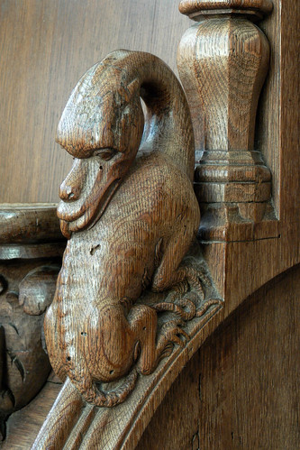 The jouées, or outer stall ends, are conceived as sculptural terminals, uniting the structure’s architecture with a rich bestiary of carved figures. Each piece transforms a functional support into a lively study of form and meaning, blending the playfulness of late medieval carving with the elegance of Renaissance design.