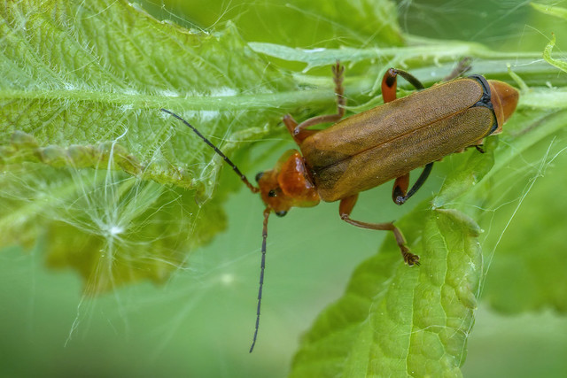 Trouvé dans les zones d'herbes hautes et de forêts, il s'agit d'un coléoptère soldat orange/jaune avec un tibia noir qui s'étend dans les fémurs. Il s'agit d'un coléoptère canivifère qui attend ses proies sur les fleurs. Les larves chassent les vers et les escargots.