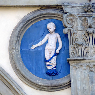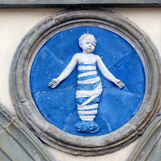 Over centuries, some medallions were replaced or repaired. Later restorations, particularly during the nineteenth century, introduced unclothed or partially unswaddled infants, reflecting evolving tastes toward classical naturalism. These differences do not alter their meaning but record the building’s ongoing life. Together, the clothed and unclothed children form a visual history of continuity and change, a lineage of compassion rendered in ceramic and light.