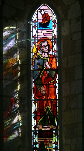 • Saint Jacques le Majeur apparaît comme apôtre pèlerin, identifiable par son bourdon; un navire au-dessus évoque les voyages missionnaires.