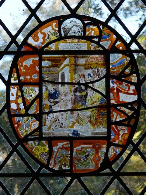 These panels are not attributable to a named artist and should be understood as examples of antiquarian reuse, valued historically for their age, narrative content, and pictorial quality rather than for individual authorship. Their presence at Radway reflects eighteenth-century antiquarian taste, particularly the collecting practices of figures such as Sanderson Miller, and illustrates the complex afterlives of early modern stained glass as it moved between domestic, picturesque, and ecclesiastical settings.