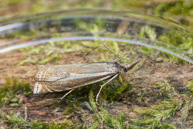 Crambus lathoniellus Taxonomy Kingdom: Animalia Phylum: Arthropoda Class: Insecta Order: Lepidoptera Family: Crambidae Genus: Crambus Species: C. lathoniellus Common Name: Hook Streaked Grass Veneer External Links Encyclopedia of Life Host Plant Information   Crambus   ‹ Crambus up Crambus pascuella › Français