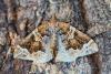 Larentiinae is a subfamily of small to medium-sized moths (wingspan 15–35 mm) in the Geometridae family. This is a large and diverse subfamily of moths, that are notable for their high species richness, especially in cooler and mountainous regions, and are among the most conspicuous and well-studied of the geometrid moths. They are particularly diverse and abundant in temperate and boreal regions, and at high elevations in the tropics. The forewings are often angled or notched, unlike the more rounded wings of Sterrhinae. Colouration is usually dark, with bold contrasting patterns: browns, greys, blacks, often with white, orange, or reddish bands. The wings often show strongly toothed or jagged cross-lines. The caterpillars often have camouflage colouration (brown, green, or mottled) to blend with twigs or foliage. Many species feed on herbaceous plants, in contrast to other subfamilies that may prefer woody hosts.