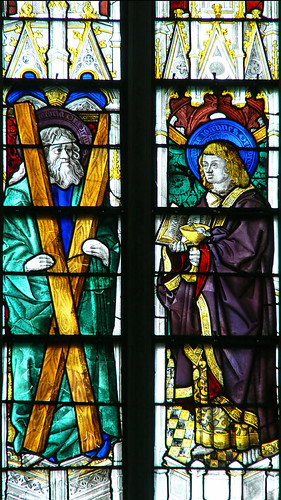 Nineteenth-century Britain rediscovered Andrew within the context of revival and reform. The Clayton and Bell panels at Gloucester Cathedral show him among his fellow apostles — dignified, contemplative, and restored to the Gothic splendour of coloured glass. His cross is no longer a sign of torment but an emblem of steadfastness.