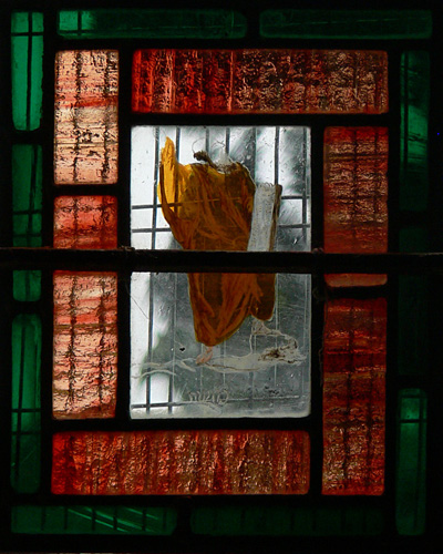 The modesty of the design reflects a new age of private faith. Following the English Reformation, religious imagery retreated from cathedral splendour into the intimate world of manor chapels and domestic piety. In these small fragments of glass, the saint remains present — not as the focus of public devotion, but as a quiet companion to personal prayer.