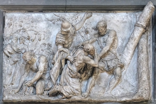 By 1714, the image of St Andrew had become a study in movement and emotion. The low-relief sculpture in San Gaetano, Florence, shows the saint at the moment of his crucifixion, his body twisted and muscular, surrounded by Roman executioners. This Baroque interpretation, all dynamism and drama, transforms the martyr into a hero of divine will.