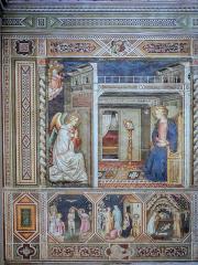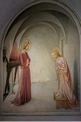 This Annunciation (1438-1443) frescoe, by Fra Angelico, is in cell 3 of the novice accommodation at San Marco Florence.