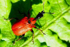 The soldier beetles, Cantharidae, are relatively soft-bodied, straight sided beetles. They are an important biological control for aphids, caterpilars, grasshoppers, and other soft bodied pests.