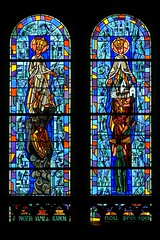 This luminous two-light window in the Church of Saint-Pierre, Pontlevoy, offers a modern devotional portrayal of Notre-Dame de la Blanche, created in the years following the Second World War. Designed by Gaston de Bodard and executed by the Orléans master-glazier Louis Gouffault.