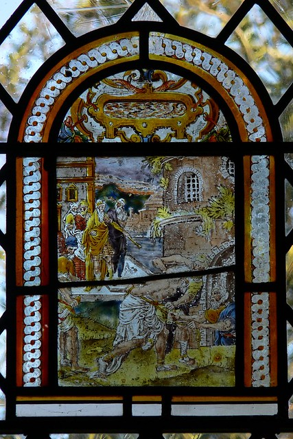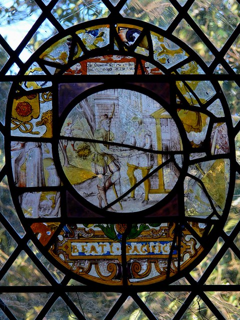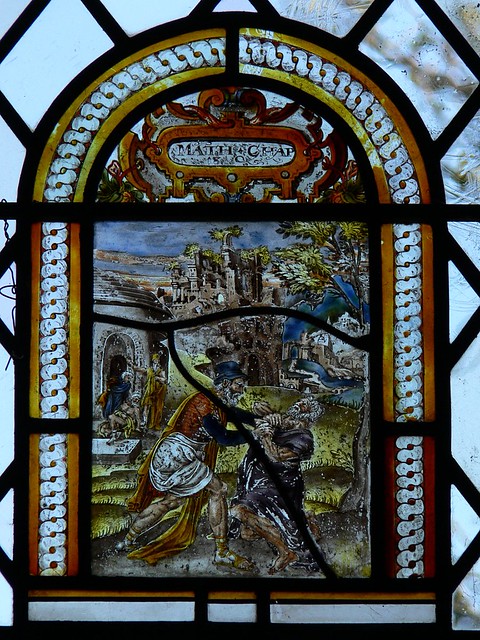 Within the church, the panels function less as a unified iconographic programme than as historical survivals, layered into the fabric of the building and offering a rare glimpse of Netherlandish narrative glass of the seventeenth century preserved in an English parish context.