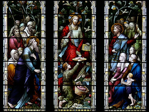 In the Tewkesbury Abbey window by John Hardman & Co. (1888), Andrew reappears in narrative form, gesturing to the boy who brings the loaves and fishes to Christ. Here, his faith is active, compassionate, and instructive. The Victorian Andrew is not a martyr in pain but a teacher and participant — a moral guide for the modern believer.
