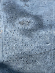 The floor slab to Lady Harrington in St Mary’s Church, Gayton, is a fine example of 17th-century commemorative stonework, combining formal design with a strikingly personal tone. Carved from smooth local limestone, its simple border and restrained scrollwork at either end frame an inscription notable for both its clarity and warmth.